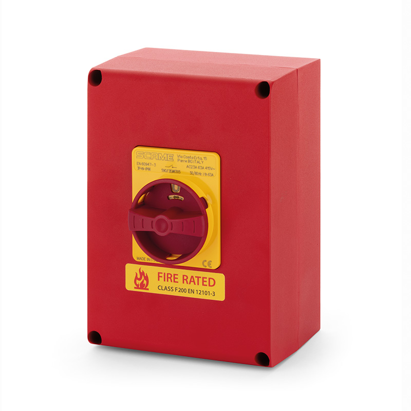 80A 3P+N LINK IP66 150x210x107mm Y2 IK10 EMERGENCY YELLOW/RED FIRE RATED